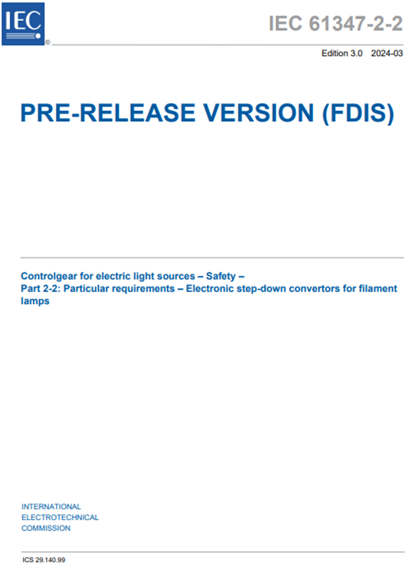 标准更新|2024年03月22日IEC发布标准IEC 61347-2-2: 2024预发布版本!