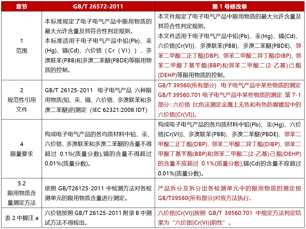 其中,中国RoHS配套的标准GB/T 26572-2011《电子电气产品中限用物质的限量要求》第1号修改单将邻苯二甲酸二正丁酯(DBP)、邻苯二甲酸二异丁酯(DIBP)、邻苯二甲酸丁基苄酯(BBP)和邻苯二甲酸二(2-乙基)己酯(DEHP)四种邻苯二甲酸酯纳入标准管控,GB/T 26572-2011限用物质增至十项。该要求将于2026年1月1日正式实施。
