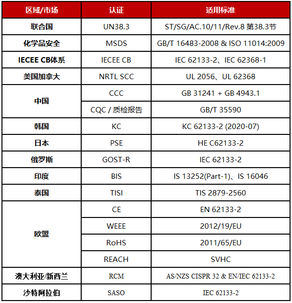 充电宝已经成为现代生活中不可或缺的设备,但其市场质量参差不齐,安全问题备受关注。为了保证消费者使用安全可靠的移动电源,各国都制定了相应的认证标准。以下是全球主要市场充电宝认证标准概览。