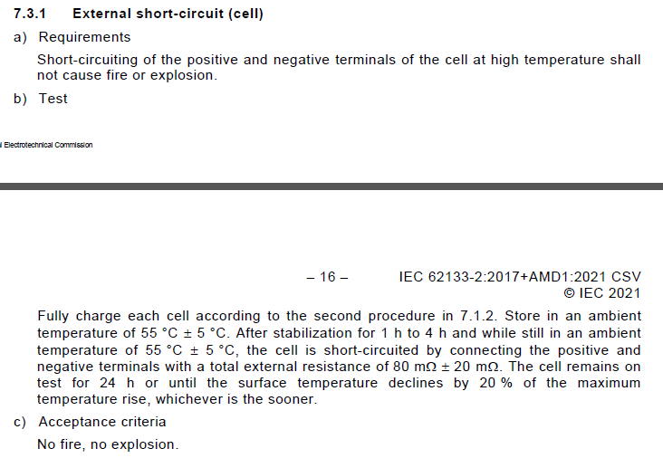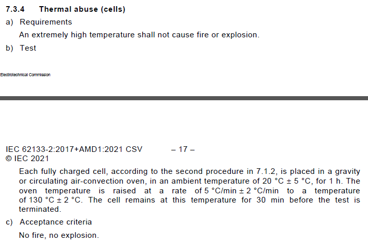 标准IEC 62133-2 Clause 7.3.1&7.3.4要求原文: